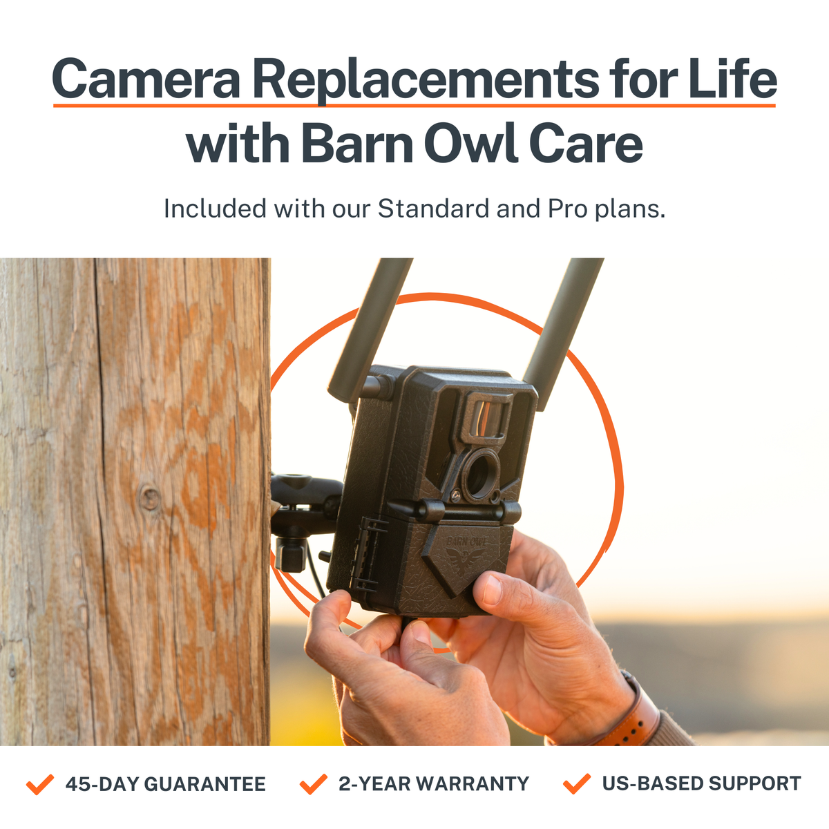 Barn Owl cameras provide instant visibility of your land, equipment, and entry points — no Wi-Fi required.