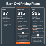 When you receive your cameras, you can select any of our plans in Barn Owl HQ. Plans start from just $7 per camera, per month. See our Billing Plans and Billing Policy for details.
